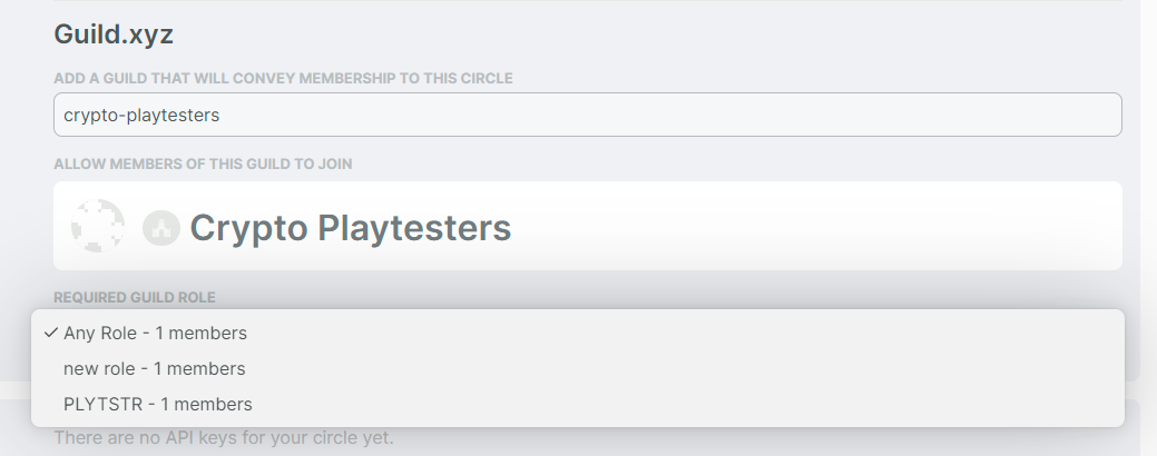 Create a Guild role associated with Coordinape circle access (or use an existing Guild role; note that only one Guild role can be used to provide access to the Coordinape circle)