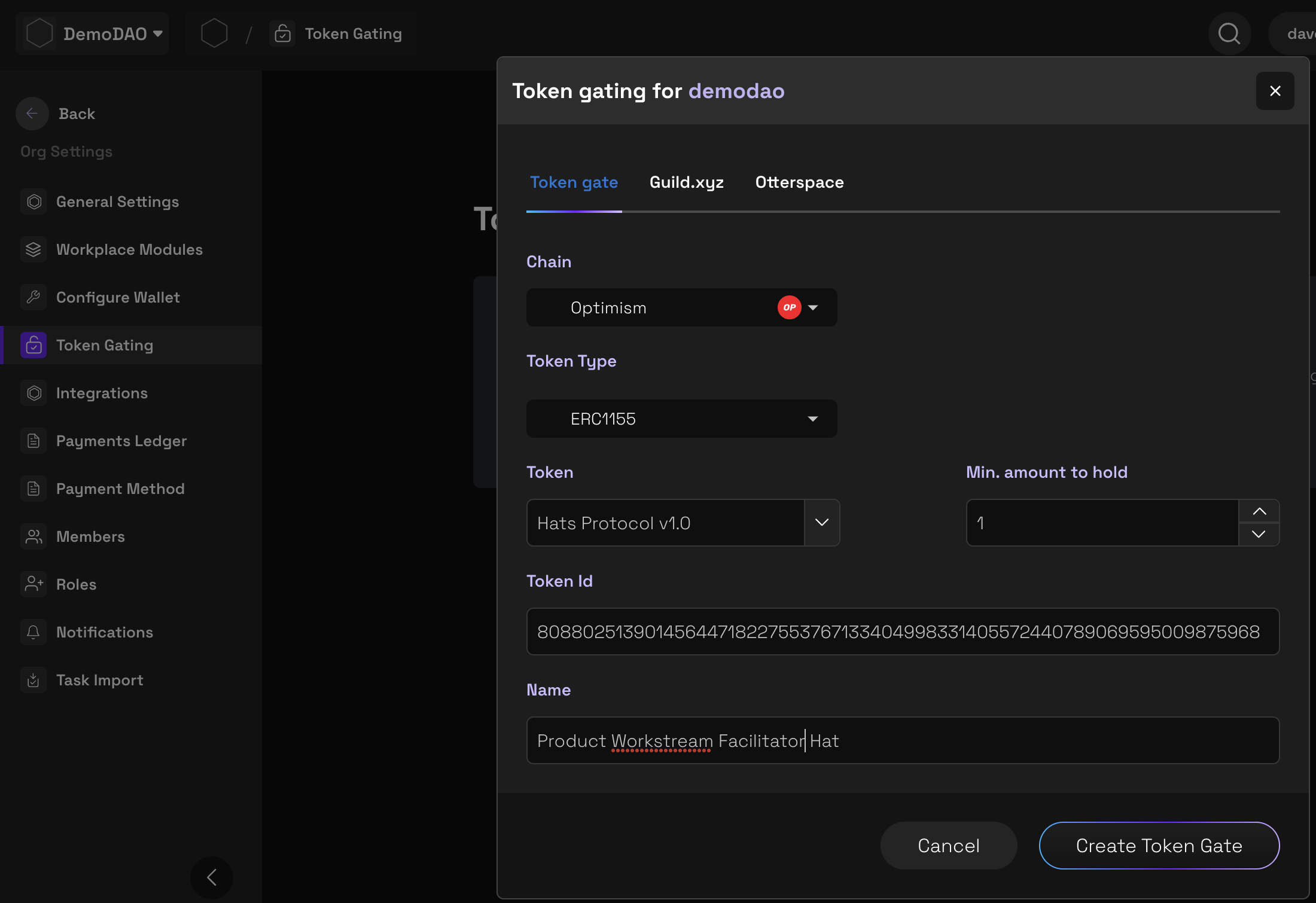 Select **Create Token Gate**